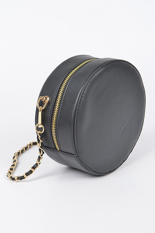 Crafted from high-quality vegan leather with a glossy finish, this bag includes a luxe gold-tone chain strap for easy wear across the body or on the shoulder. The zip-around closure keeps your essentials secure while you steal the spotlight.