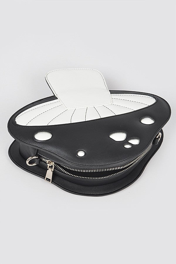 Add some woodland magic to your look with this fun mushroom-shaped handbag. Designed with a bold toadstool cap in black, brown, or red, paired with a white underside, this novelty purse is perfect for those who love playful fashion. The adjustable strap makes it easy to wear as a crossbody, while the roomy interior keeps essentials secure.